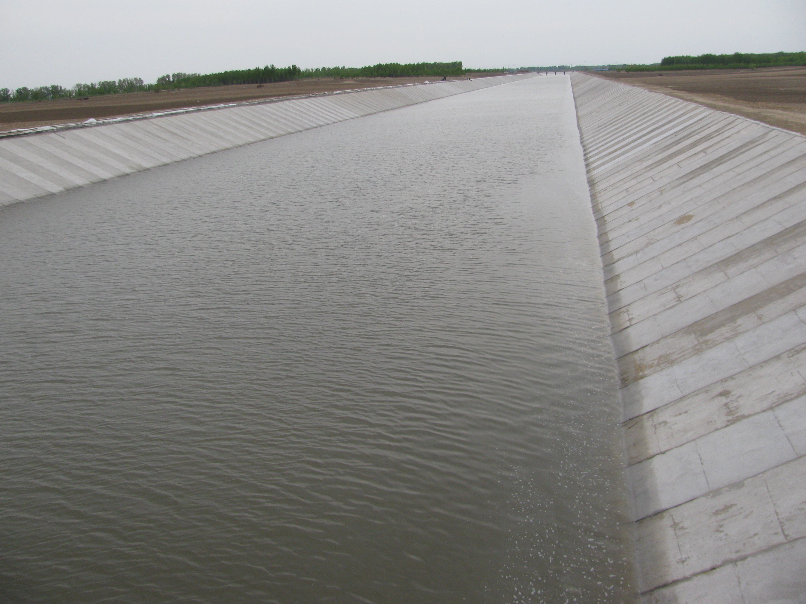 輸水總干渠長52.417km,其中在樁號24+398以上渠道利用白沙灘灌區(qū)現(xiàn)有干渠進行擴建改造,擴建后渠道樁號0+000~15+615m段渠道底寬25m,15+615~15+635m段為漸變段,渠道樁號15+635~24+398m段渠道底寬20m。該段渠道內(nèi)坡坡比為1:2,外坡坡比為1:2.5,渠道比降1/30000,渠堤頂寬度左堤為3.5m,右堤為2.5m。